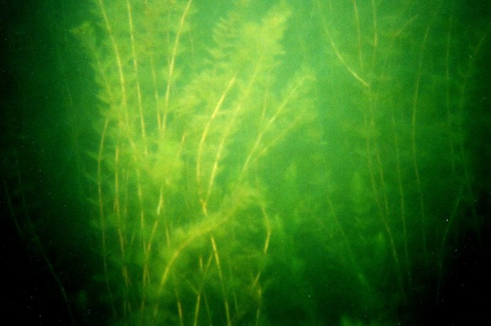 Most of my diving has been on the west side of the lake by the lodge and marina, where Twin Creeks empties into the lake. Make sure you stay north of the marina and far away from the channel the boats use to enter and exit the marina. The visibility can get up to 35 feet, however it depends on the weather. It rains quite often at Fishlake because of the altitude. The diving is fun here, however, don't expect to wear anything less than a full quarter inch wet suit. The water temperature on the surface will be in the low sixties in the summer. The thermocline usually begins around thirty-five feet. The water temperature drops quickly at this point. A typical temperature at 60 feet is 46 degrees. Fishlake lake grassThere is a circle of lake grass around the lake. It starts to grow at a depth of about 20 feet. The lake grass gives a little bit of a "kelp" feel to it. Makes it a little more interesting and closer to the ocean because of the grass. Fish hide in the grass and divers will get closer to the fish than a typical lake. Diving around the lake grass, especially at night, can be a little stressful to new divers. Night diving is fun because a diver can get very close to the fish. Fishlake lake grassThere are some large trout to see if you are lucky. Try diving off the east side of the lake if you have a boat. The water gets deep faster and divers can find many lures that fisherman have lost. Spear fishing is allowed in Fishlake --- check out the current regulations.